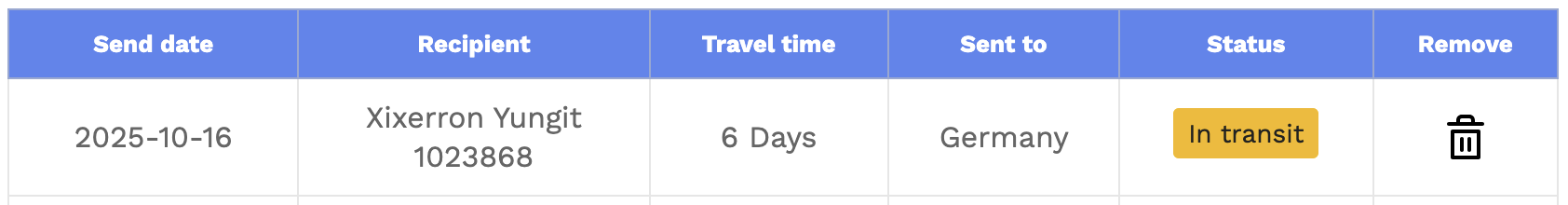 위 그림에서 보듯이 10/16에 마지막으로 편지를 발송했습니다. 아직 편지가 배송중에 있을 것으로 생각합니다.